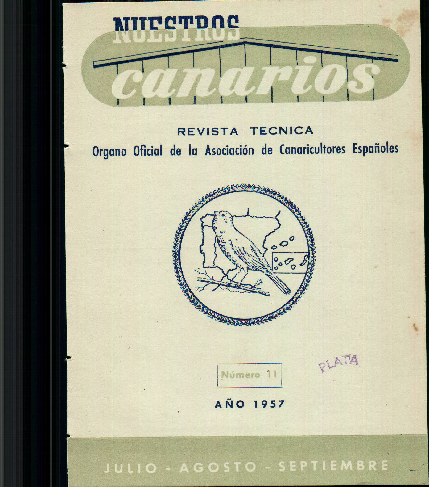 Nuevo boletin de la A. de Canaricultores Españoles, correspondiente al tercer trimestre de 1957, trimestre en el que fué fundada la Federacion Ornitológica Española, actualmente en C.O.E. y que le corresponde el honor de ser la decana de las Federaciones Ornitologicas Españolas.