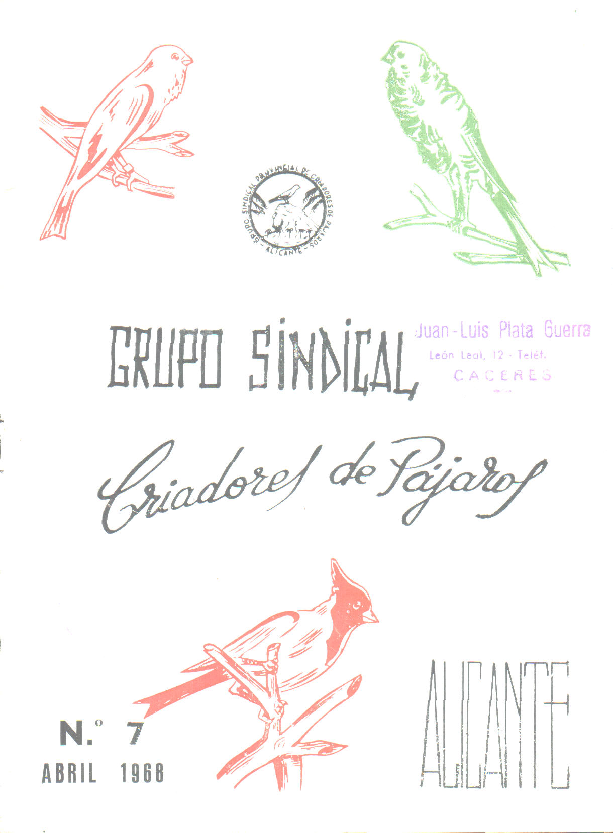 Añadimos una nueva publicación, a la «Biblioteca de una Afición». En este caso se trata del Boletin de Informacion, editado por el Grupo Sindical de Criadores de Pájaros de Alicante, afecto al Sindicato Nacional de Ganadería