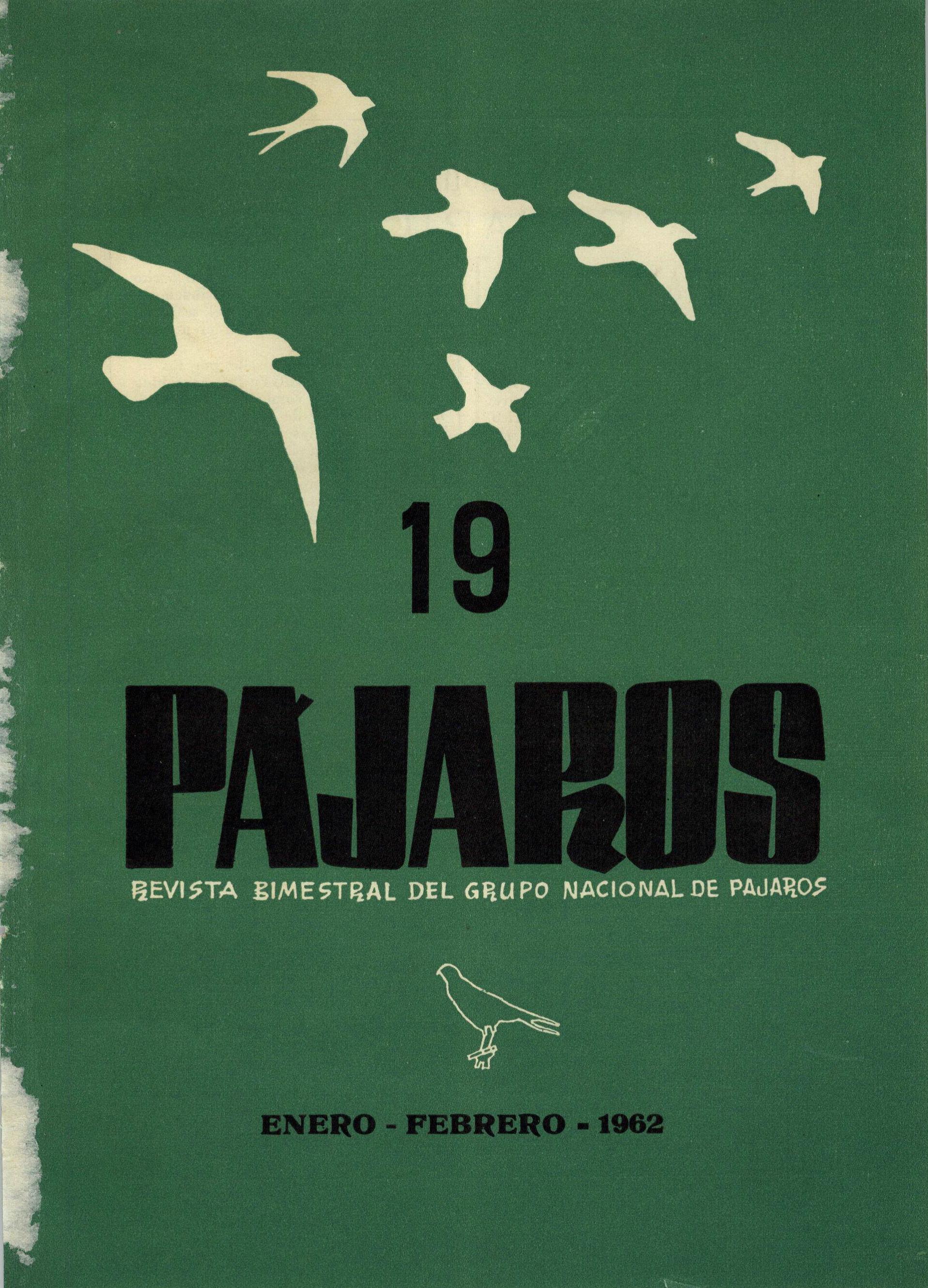 En esta ocasión se trata del fascículo 19 correspondiente al bimestre Enero-Febrero de 1962 de la revista Pájaros, órgano oficial de comunicación del Grupo Nacional de Pájaros, que con el tiempo se convertiría en la actual F.O.C.D.E.