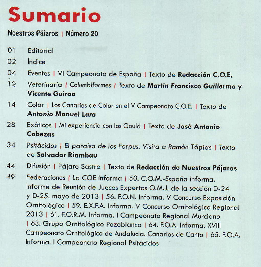 a disponible en la sede el número 20 de la revista «Nuestros Pájaros». Como siempre con interesantísimos articulos e impresionantes fotografías.