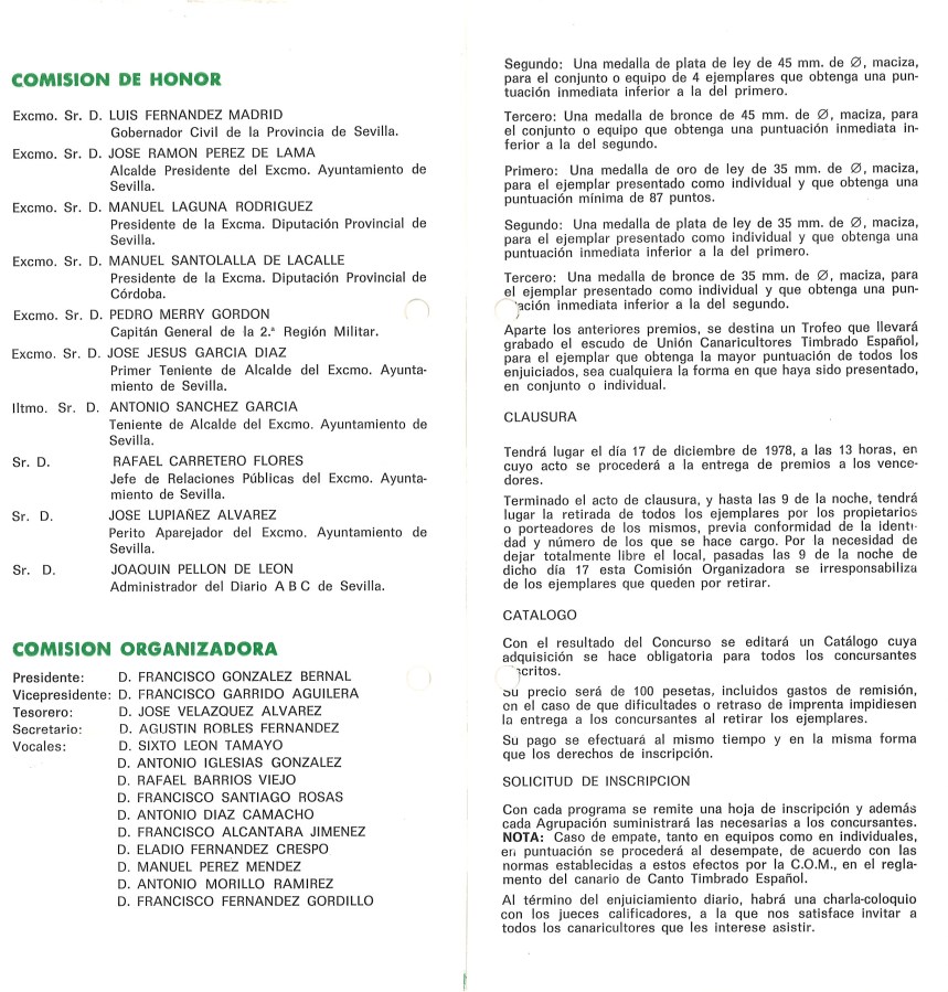 MEMORIA DE UNA AFICIÓN / CONCURSOS: Unión Canaricultores Timbrado Español de España, 1978