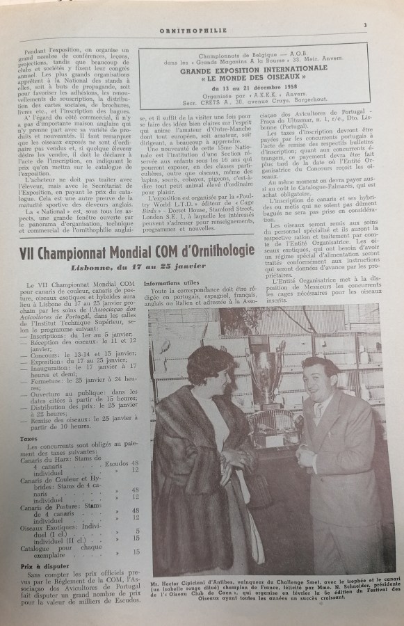 ← RESULTADOS DEL VII CAMPEONATO DEL MUNDO DE CANTO: ITALIA, (Udine 1959) y resto de variedades en PORTUGAL, (Lisboa 1959)