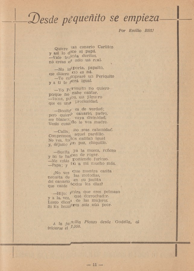 POESIA: «Desde pequeñito se empieza», por Emilio Bru (Godella, 1958)