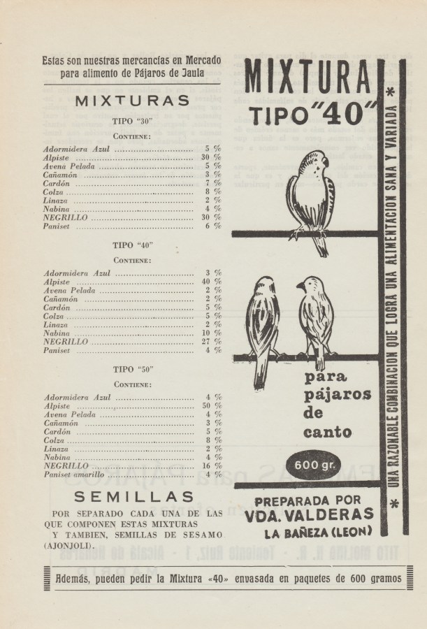 Con qué se alimentarán sus pájaros en 1965?; I