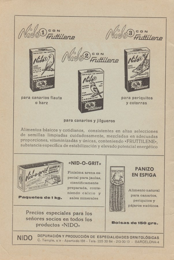 Con qué se alimentarán sus pájaros en 1965?; I